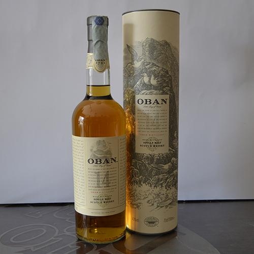Oban 14 Anni appare color oro antico luminoso. Al naso iniziali sensazioni robuste di zolfo e torba, cui seguono note di fiori essiccati, di agrumi canditi e frutta secca, di malto, caramello e spezie. All’assaggio è dolce e secco, vagamente salmastro.